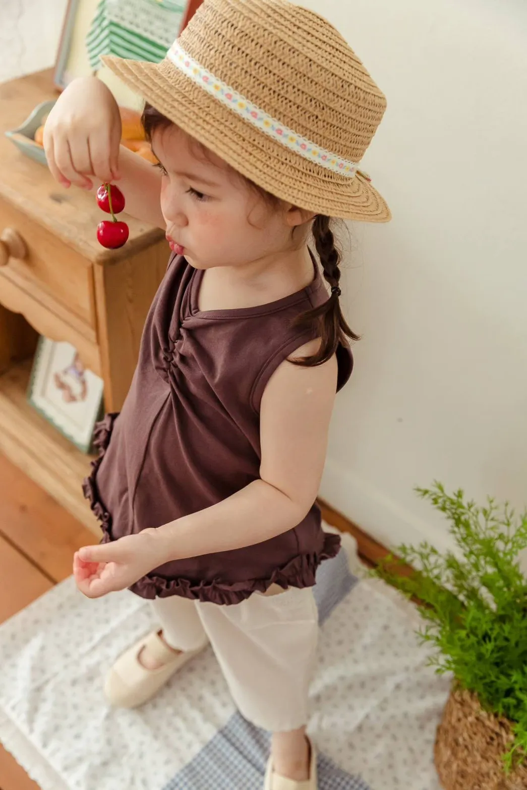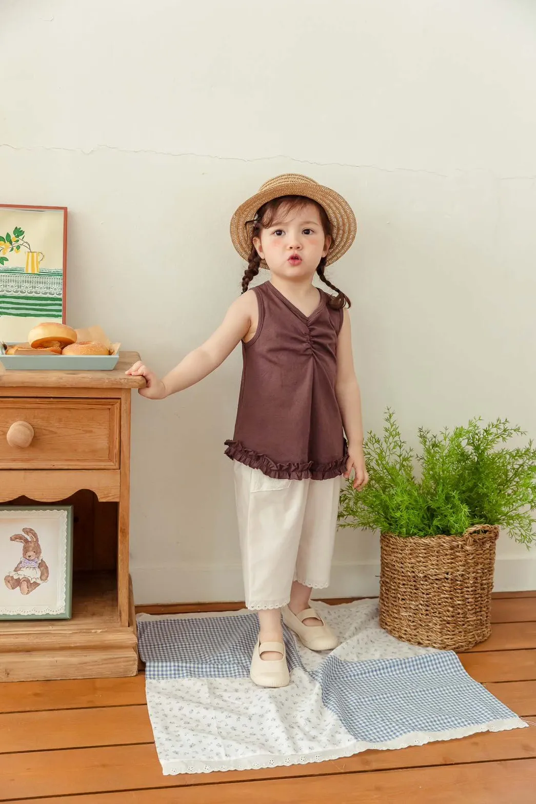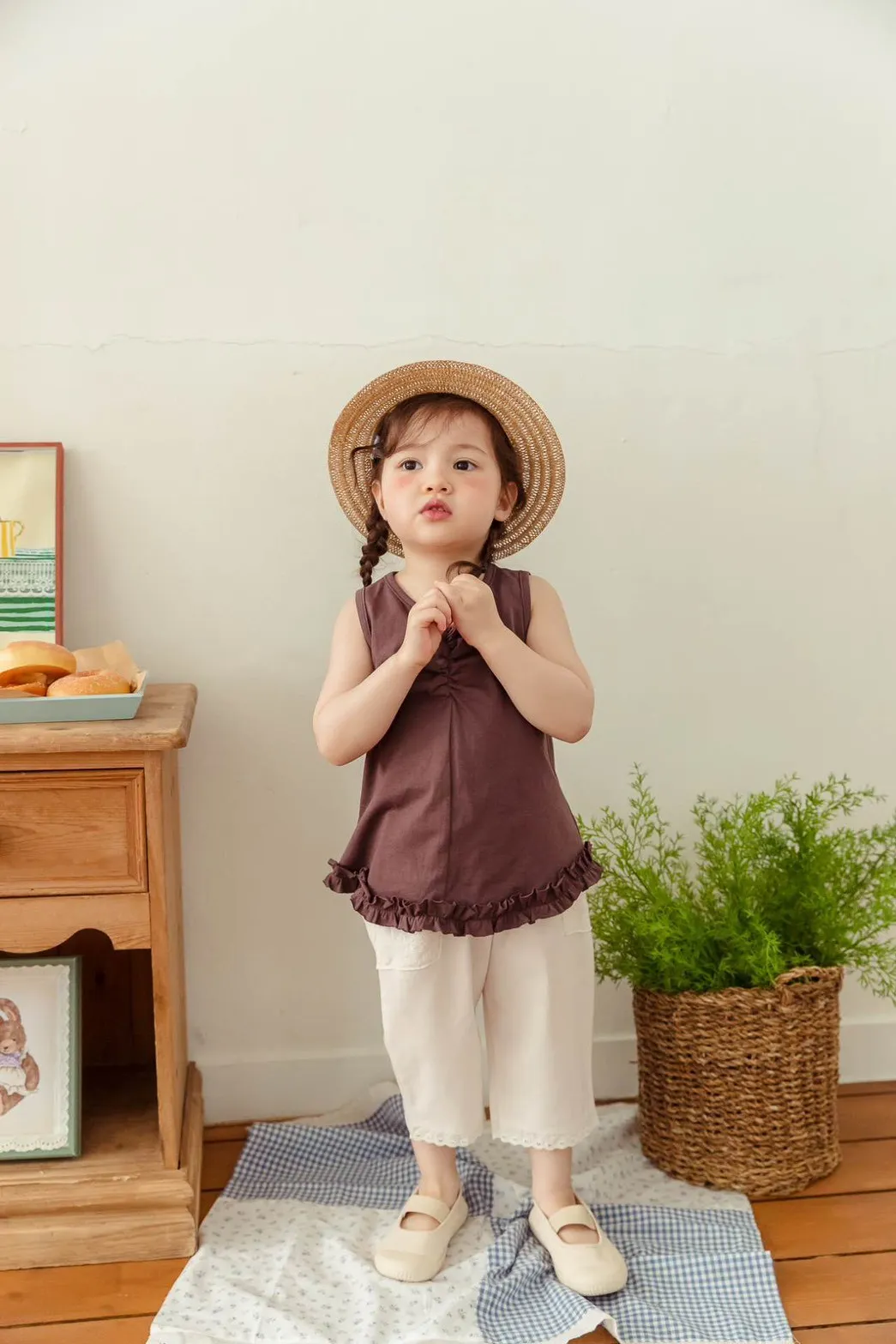 正韓抓皺下擺蕾絲背心(95-145cm預購)