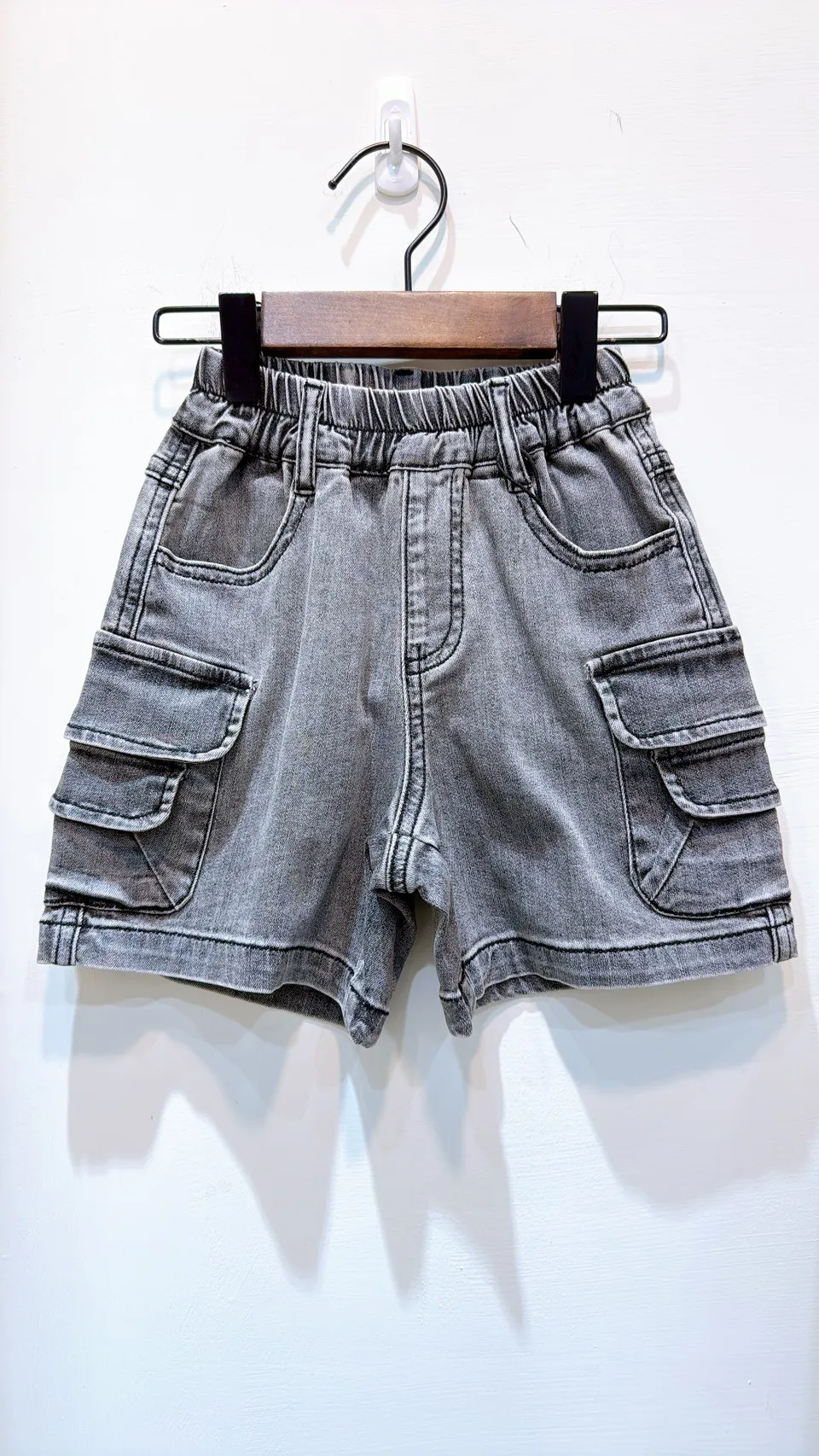 香水娜娜~雙袋蓋⼯裝⽜仔短褲(90-140cm現貨)