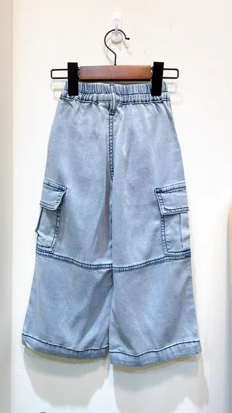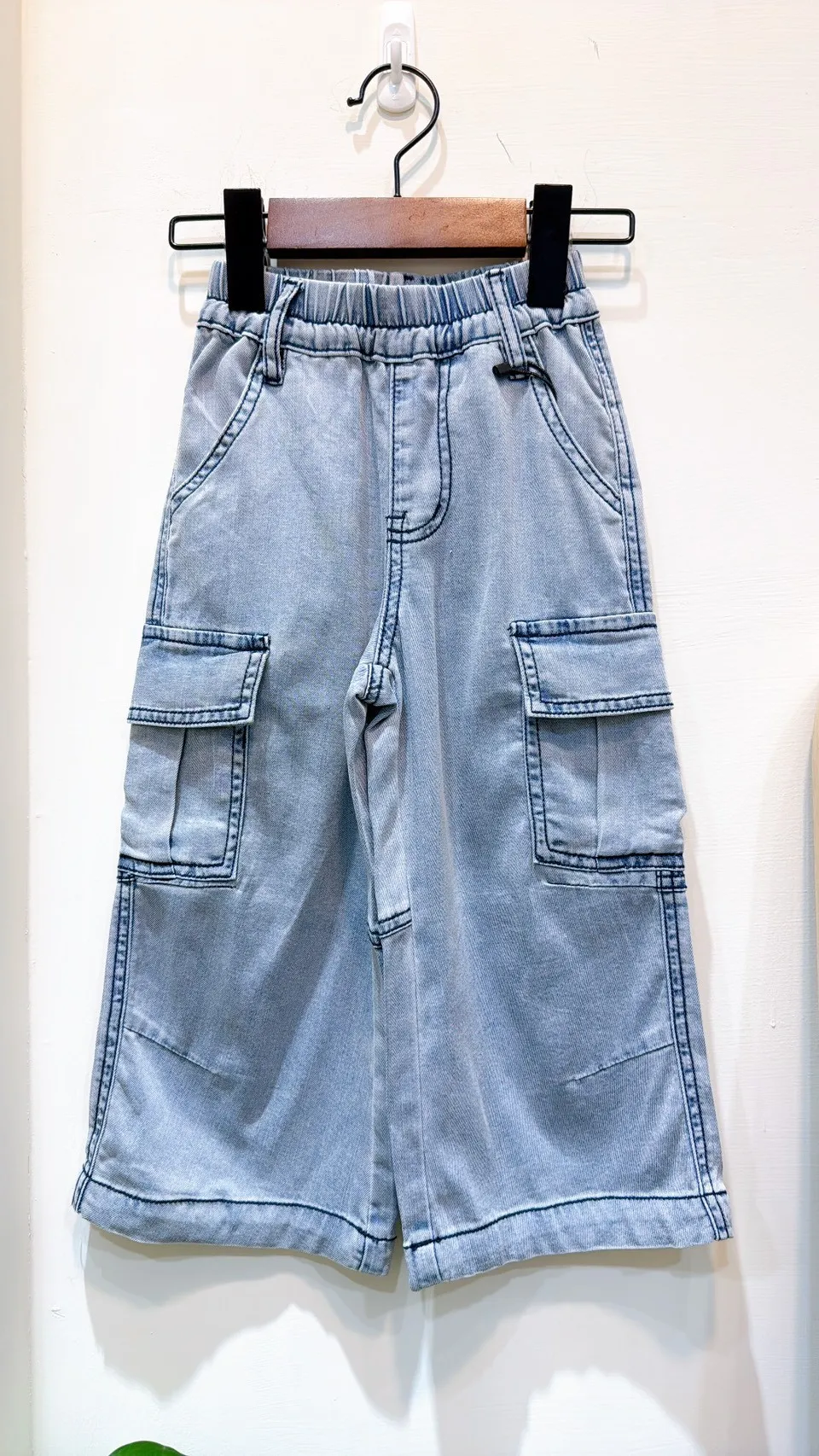 香水娜娜~⼯裝袋天絲⽜仔直筒褲(90-140cm現貨)