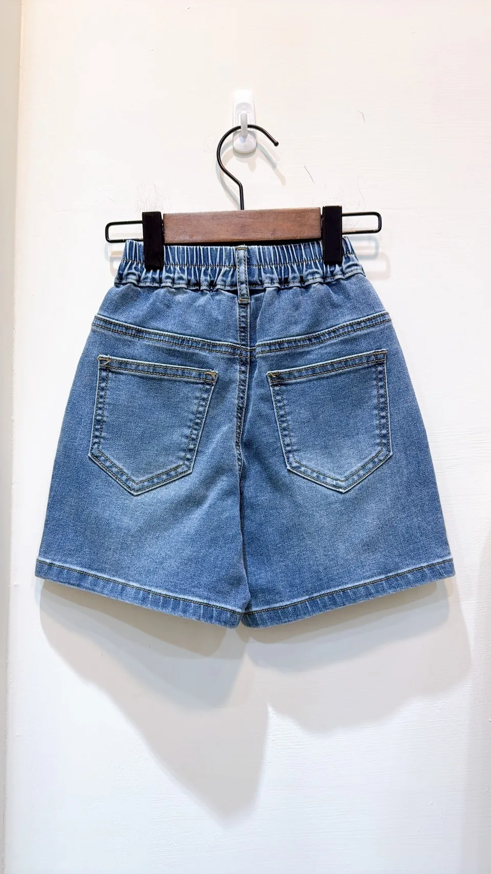 香水娜娜~雙袋⼝耳仔扣⽜仔短褲(90-160cm現貨)