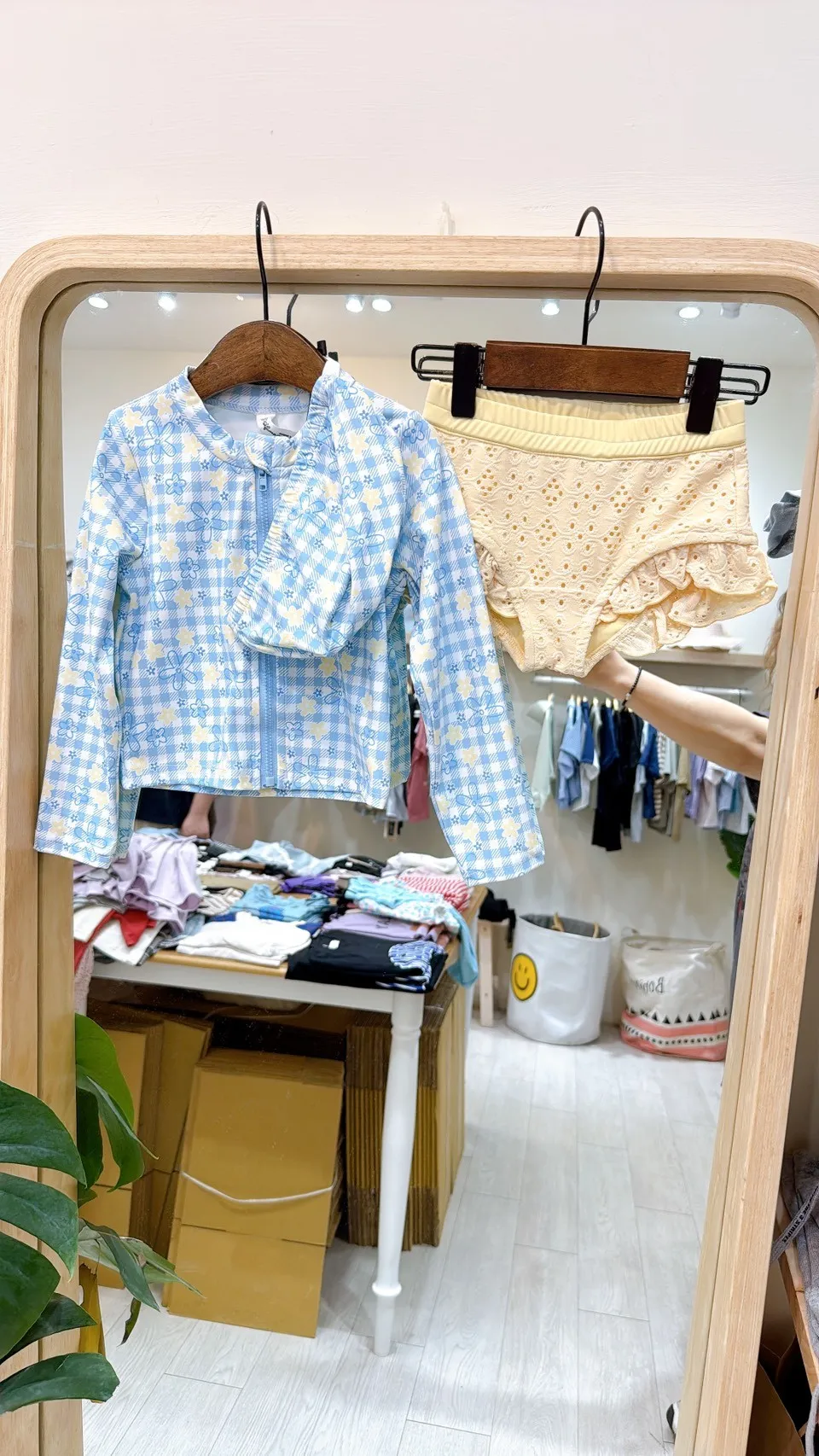 香水娜娜~格花拉鏈泳衣套裝(90-140cm現貨)